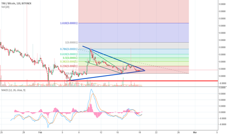 TRX has reached the end of a symmetrical triangle and could go either way.